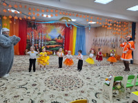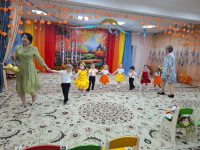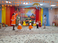 Балаларға қонаққа Қоян мен Түлкі кейіпкерлері келді. Олармен бірге балалар жапырақтармен би билеп, ойындар ойнады: саңырауқұлақтарды себетке жинады, қазақ және орыс тілдерінде күз туралы әндер айтты, өлеңдер оқыды.